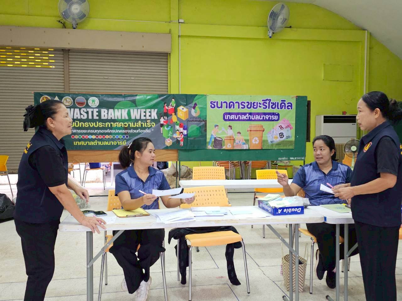 ภาพที่เกี่ยวข้อง กิจกรรมธนาคารขยะรีไซเคิลเทศบาลตำบลนาจารย์ วันที่ 13 พฤศจิกายน 2568 นายสมนึก คำรัศมี นายกเทศมนตรีตำบลนาจารย์ พร้อมด้วย คณะผู้บริหาร ปลัดเทศบาล รองปลัดเทศบาล หัวหน้าส่วนราชการ ผู้อำนวยการสถานศึกษา สมาชิกสภาเทศบาล พนักงานเทศบาล คณะครูและนักเรียนโรงเรียนอนุบาลเทศบาลตำบลนาจารย์ พนักงานจ้าง และประชาชนชาวเทศบาลตำบลนาจารย์ ได้ร่วมกันนำขยะรีไซเคิลมาขายและฝากไว้กับ ธนาคารขยะรีไซเคิลเทศบาลตำบลนาจารย์ กิจกรรมครั้งที่ 15 ประจำเดือนพฤศจิกายน2568 กิจกรรมนี้เป็นส่วนหนึ่งของการส่งเสริมการมีส่วนร่วมของบุคลากรในการบริหารจัดการขยะภายในองค์กร สร้างจิตสำนึกรักษ์สิ่งแวดล้อม และลดปริมาณขยะที่ต้องกำจัดอย่างไม่เหมาะสม