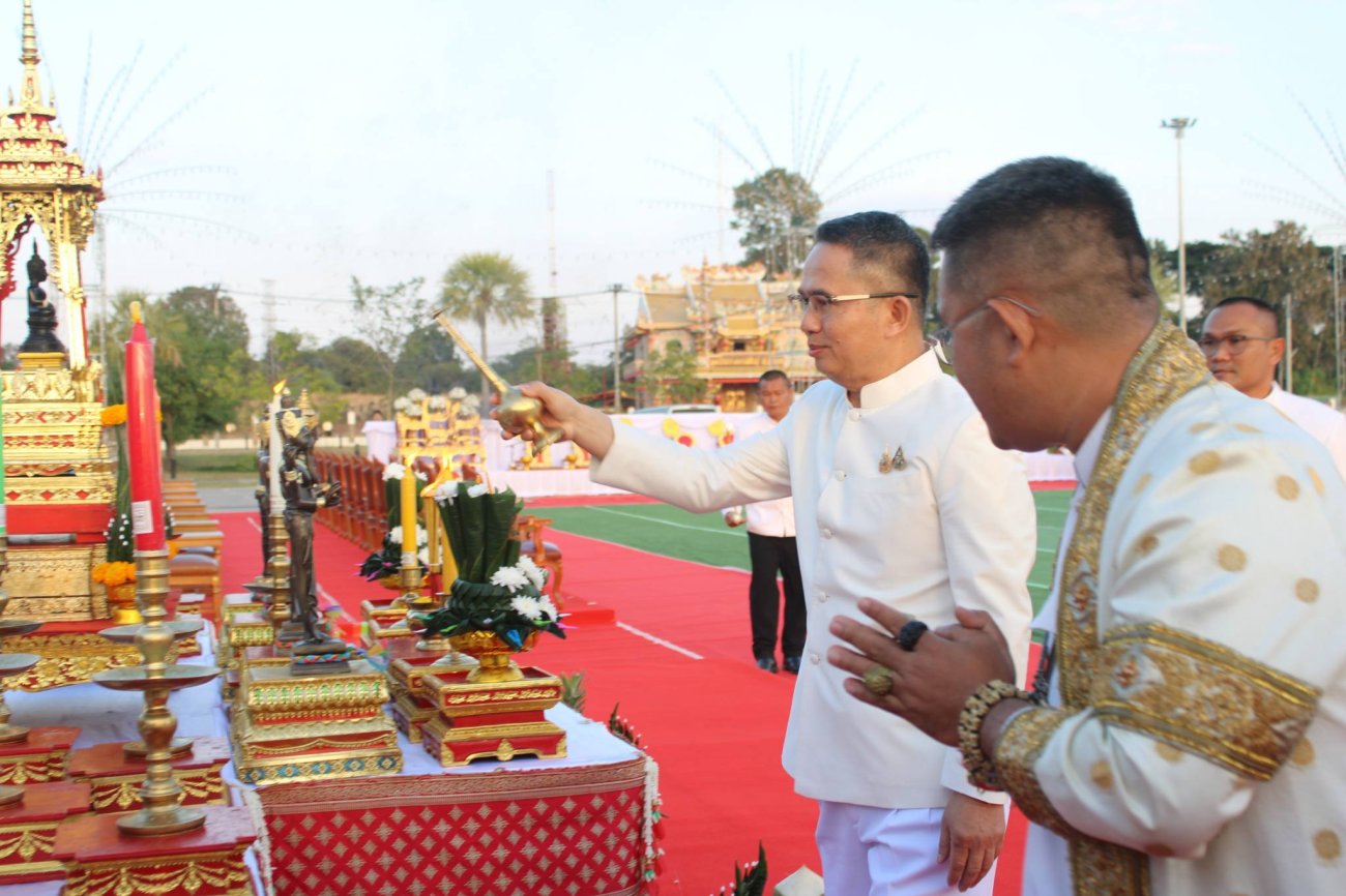 ภาพที่เกี่ยวข้อง วันที่ 11 มกราคม 2569 เวลา 17.00 น. ณ บริเวณลานพระบรมราชานุสาวรีย์พระบาทสมเด็จพระจุลจอมเกล้าเจ้าอยู่หัว ศูนย์ราชการจังหวัดกาฬสินธุ์ เทศบาลตำบลนาจารย์ โดยการนำของ นายสมนึก คำรัศมี นายกเทศมนตรีตำบลนาจารย์ พร้อมด้วย รองนายกเทศมนตรีตำบลนาจารย์ และเลขานุการนายกเทศมนตรีตำบลนาจารย์ เข้าร่วม พิธีทำบุญสืบชะตาเมืองกาฬสินธุ์ ถิ่นหลวงพ่อองค์ดำ ค้ำคูณรุ่งเรือง เพื่อเสริมความเป็นสิริมงคล รับโชค รับชัย รับความเจริญรุ่งเรืองตลอดปี พ.ศ. 2569 โดยมี นายสุวรรธณ์ เข็มธนเพ็ชร ผู้ว่าราชการจังหวัดกาฬสินธุ์ เป็นประธานในพิธี พร้อมด้วยส่วนราชการ ภาคเอกชน ภาคประชาสังคม องค์กรปกครองส่วนท้องถิ่น เครือข่ายกองทุนแม่ของแผ่นดิน และพี่น้องประชาชนผู้มีจิตศรัทธา เข้าร่วมพิธีอย่างพร้อมเพรียง ภายในงานมีกิจกรรมสำคัญ ได้แก่ พิธีถวายความอาลัยและน้อมรำลึกในพระมหากรุณาธิคุณ แด่ สมเด็จพระนางเจ้าสิริกิติ์ พระบรมราชินีนาถ พระบรมราชชนนีพันปีหลวง พิธีทอดผ้าป่ากองทุนแม่ของแผ่นดิน 438 หมู่บ้าน เพื่อนำเงินไปใช้ในการแก้ไขปัญหายาเสพติดของจังหวัดกาฬสินธุ์ นอกจากนี้ ยังมี พิธีบวงสรวงใหญ่ สักการะสิ่งศักดิ์สิทธิ์ ครูบาอาจารย์ และเทพเทวดา การแสดง “ฟ้อนเบิกฟ้า สืบชะตากาฬสินธุ์ แผ่นดินเรืองรอง” และ ฟ้อนผู้ไทกาฬสินธุ์ จากนักเรียนและกลุ่มสตรี สร้างความงดงามและความประทับใจแก่ผู้ร่วมงาน