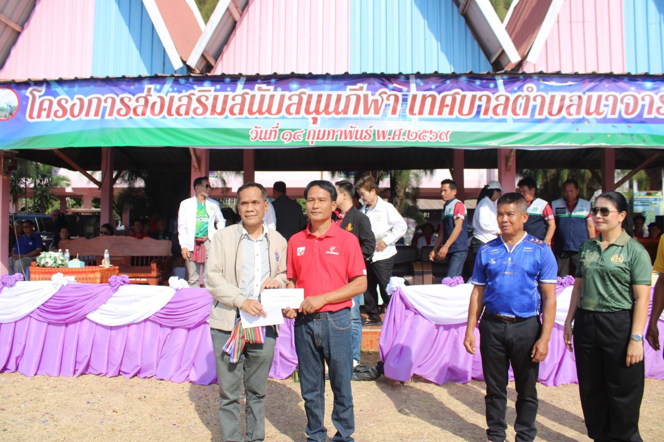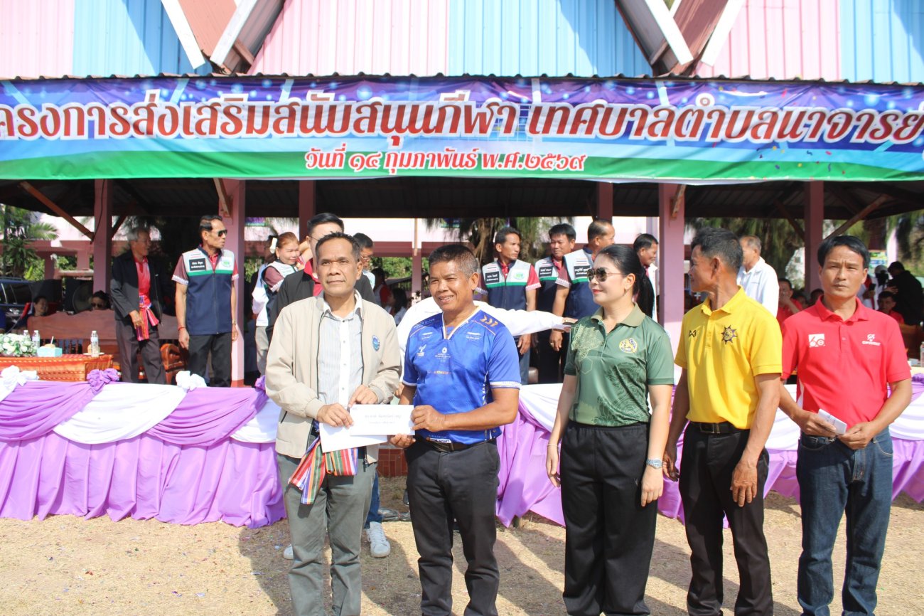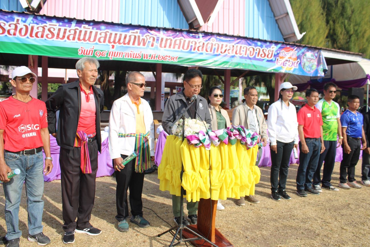 เทศบาลตำบลนาจารย์ จัดกิจกรรม โครงการส่งเสริมสนับสนุนกีฬา ประจำปีงบประมาณ 2569 วันเสาร์ ที่ 14 กุมภาพันธ์ 2569 เวลา 07.30 น. ณ โรงเรียนชุมชนนาจารย์วิทยา ตำบลนาจารย์ อำเภอเมือง จังหวัดกาฬสินธุ์ ในโอกาสนี้เราได้รับเกียรติจาก ท่านวิรัช พิมพะนิตย์ ว่าที่สมาชิกสภาผู้แทนราษฎร จังหวัดกาฬสินธุ์ เขต 1 เป็นประธานในพิธีเปิดโครงการฯ อย่างเป็นทางการ โดยมี นายสมนึก คำรัศมี นายกเทศมนตรีตำบลนาจารย์ กล่าวรายงานวัตถุประสงค์ของโครงการ การจัดกิจกรรมในวันนี้เพื่อส่งเสริมให้ประชาชนและเยาวชนได้ออกกำลังกาย มีสุขภาพกายแข็งแรง สุขภาพใจที่สดใส ใช้เวลาว่างให้เกิดประโยชน์ สร้างความรัก ความสามัคคี และสัมพันธไมตรีที่ดีในชุมชน ภายในงานได้รับเกียรติจาก ท่านพงษ์ พิมพะนิตย์ สมาชิกสภา อบจ.กาฬสินธุ์ นายสมหวัง ลิ้มทองใบตัวแทนนายกองค์การบริหารส่วนจังหวัดกาฬสินธุ์ นายมงคล สำราญเนตร นายกเทศมนตรีตำบลโพนทอง นายมตราวิทย์ คำหงษา นายกเทศมนตรีตำบลภูปอ นางสุนิตย์ รุทเทวิน นายกเทศมนตรีตำบลกลางหมื่น นายประครอง สุขไผ่โพธิ์ นายกเทศมนตรีตำบลไผ่ พร้อมด้วยคณะผู้บริหาร ประธานสภาฯ สมาชิกสภาเทศบาลตำบลนาจารย์ สมาชิกสภาเทศบาลตำบลภูปอ ปลัดเทศบาล รองปลัดเทศบาล ผู้อำนวยการโรงเรียนชุมชนนาจารย์วิทยา ผู้อำนวยการโรงเรียนแก่งนาขามสามัคคี ผู้อำนวยการโรงเรียนบ้านโจดศิริราษฎร์บำรุง ผู้อำนวยการโรงเรียนแก่งนาจารย์พิทยาคม ผู้อำนวยการโรงเรียนผู้สูงอายุทต.นาจารย์ ผู้อำนวยการโรงพยาบาลส่งเสริมสุขภาพบ้านนาจารย์ หัวหน้าองค์การอุตสาหกรรมป่าไม้ งานสวนป่าสมเด็จ๑ ผู้อำนวยการศูนย์ส่งเสริมการเรียนรู้ระดับอำเภอเมืองกาฬสินธุ์ หัวหน้าส่วนราชการ ผู้บริหารสถานศึกษา กำนัน ผู้ใหญ่บ้าน ผู้นำชุมชน อสม. และแขกผู้มีเกียรติ เข้าร่วมพิธีเปิดอย่างอบอุ่น
